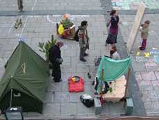 The citizens joining the PRO-TEST LAB are from different communities and social groups, young and old, students and workers, intellectuals and pensioners. The space is programmed and discussed through an Internet mailing-list forum at: vilma@vilma.cc To date, it has been joined by over 150 people, including: architecture students, green party activists, vegans, anarchists, musicians, students from TV and cinema school, animators, film world people, theater students, social democrat party, community leaders, casual passers by and regular hangout goers. Their common desire is to cooperate in staging, performing and archiving pro-test campaigns that have congregated around the mailing-list community.